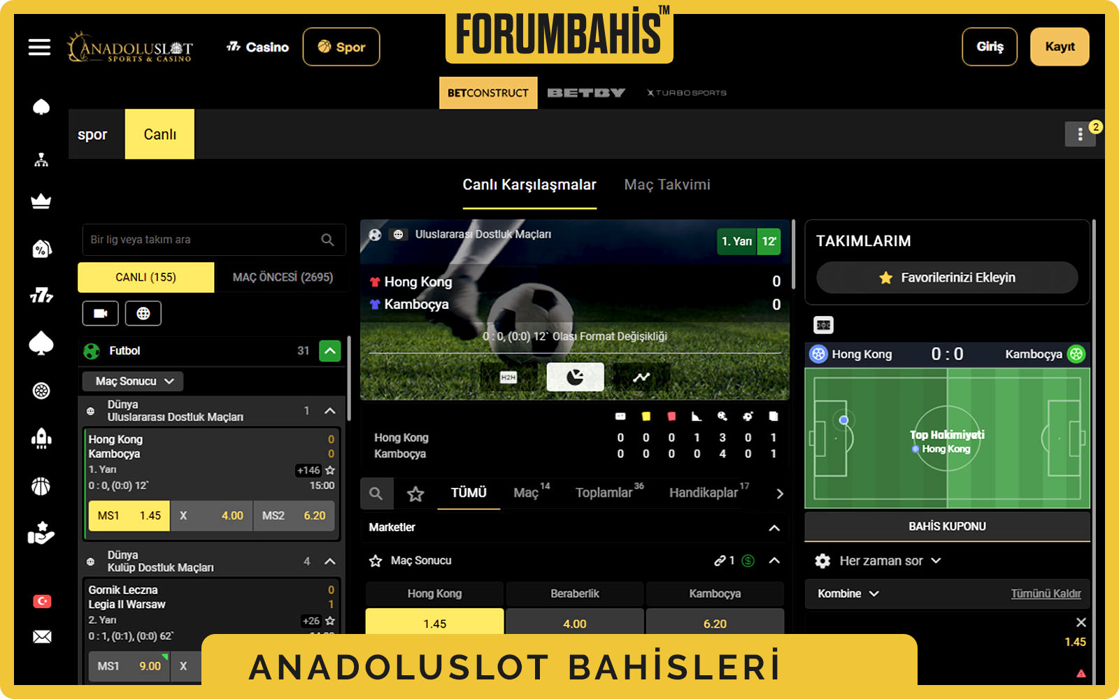 Anadoluslot’un bahis bölümü, yüzeyde geniş bir oran ve market çeşitliliği sunuyor gibi görünse de, altyapı kalitesi ve oran rekabetçiliği bakımından rakiplerinin gerisinde kalıyor. Canlı bahisler, maç öncesi bahisler ve sanal spor kategorileri mevcut; fakat oranlar genellikle piyasa ortalamasının altında kalıyor. Benim denediğim karşılaşmalarda, özellikle popüler maçlarda sunulan oranlar, büyük bahis sitelerine göre daha düşük. Bu da uzun vadede kazanç potansiyelini azaltıyor.