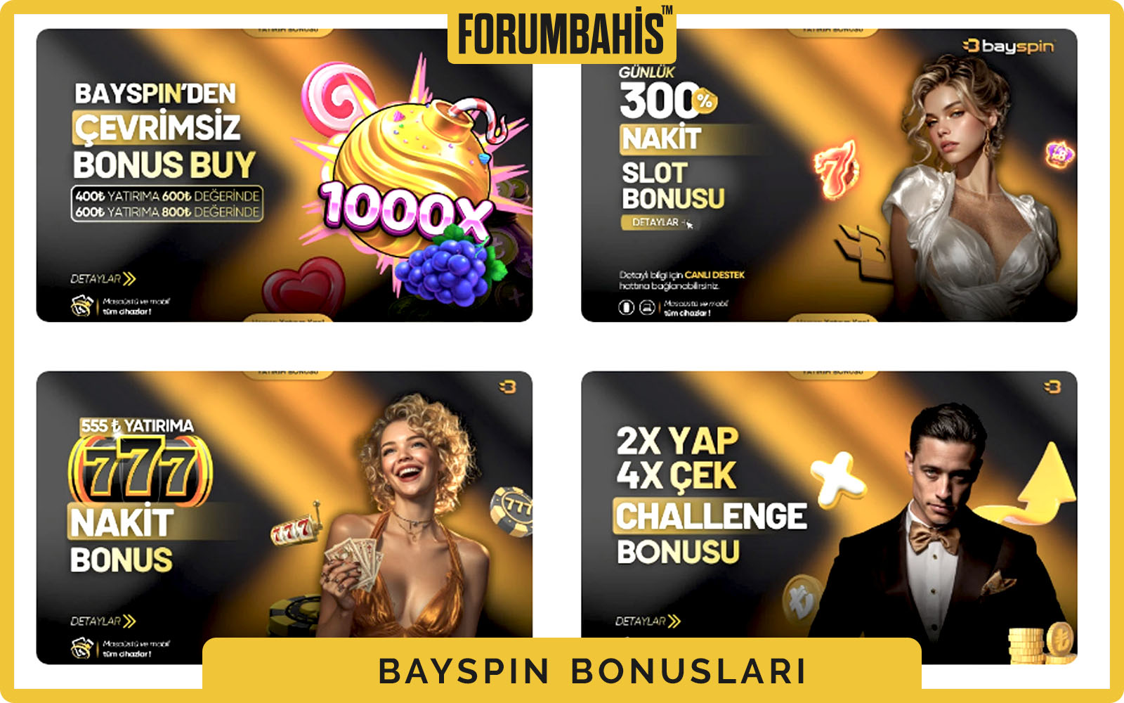 Bayspin, yeni ve mevcut üyelerine çeşitli bonus ve promosyonlar sunarak oyuncu memnuniyetini artırıyor. Hoş geldin bonusu, kayıp bonusları, yatırım bonusları ve free spin gibi kampanyalar, platformun cazibesini artırıyor. Benim favorim, %100 hoş geldin bonusu; ilk yatırımınızda hemen aktif oluyor ve çevrim şartları makul seviyede. Bonuslar hem spor bahislerinde hem de casinoda kullanılabiliyor, ancak her birinin kendine özgü çevrim şartları ve maksimum kazanç limiti var. Bonusları kullanmadan önce, çevrim kurallarını dikkatlice okumanızı tavsiye ederim.