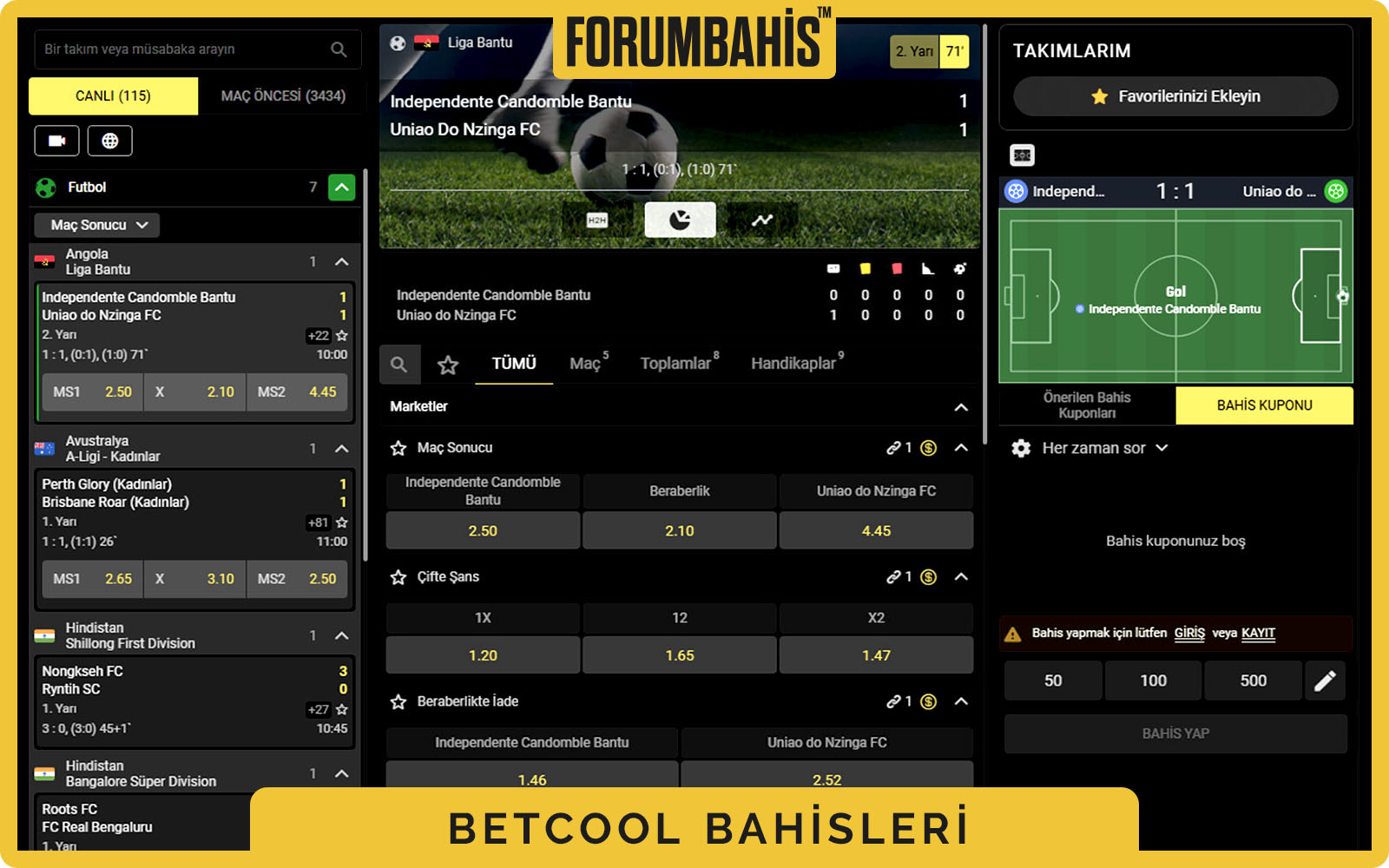 Betcool’un spor bahisleri bölümünde, maç öncesi ve canlı bahis seçeneklerinin çeşitliliği dikkat çekiyor. Özellikle futbol liglerinde Asya handikap, gol bahisleri, korner ve kart gibi özel marketler sunuluyor. Oran karşılaştırması yaptığımda, Betcool’un pek çok rakibine göre %3-5 daha yüksek oranlar verdiğini gözlemledim. Ayrıca, canlı bahislerde hızlı kupon onayı ve anlık istatistikler, kullanıcı deneyimini üst seviyeye taşıyor.