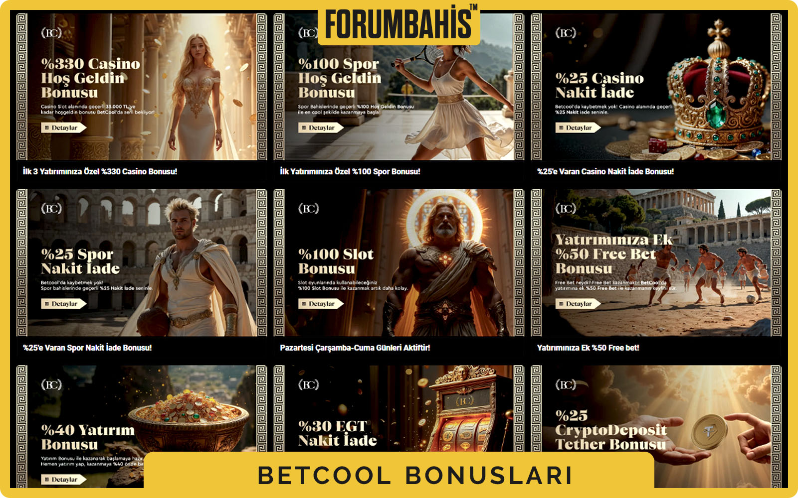 Betcool, kullanıcılarını çeşitli bonus ve promosyonlarla ödüllendiriyor. Hoş geldin bonusu, kayıp bonusları, yatırım bonusları ve bedava dönüşler gibi seçenekler mevcut. Hoş geldin bonusu %100 oranında olup, maksimum 2000 TL’ye kadar veriliyor. Yatırım bonusları ise genellikle %20-30 arasında değişiyor. Kayıp bonusları, haftalık olarak %25’e kadar iade imkanı sunuyor. Bonusların çevrim şartları, bahis ve casino bölümlerinde farklılık gösteriyor. Spor bahislerinde genellikle 7 kat, casinoda ise 30 kat çevrim gerekliliği var. Bonuslar, belirli oyunlarda ve maksimum kazanç limitleriyle kullanılabiliyor.