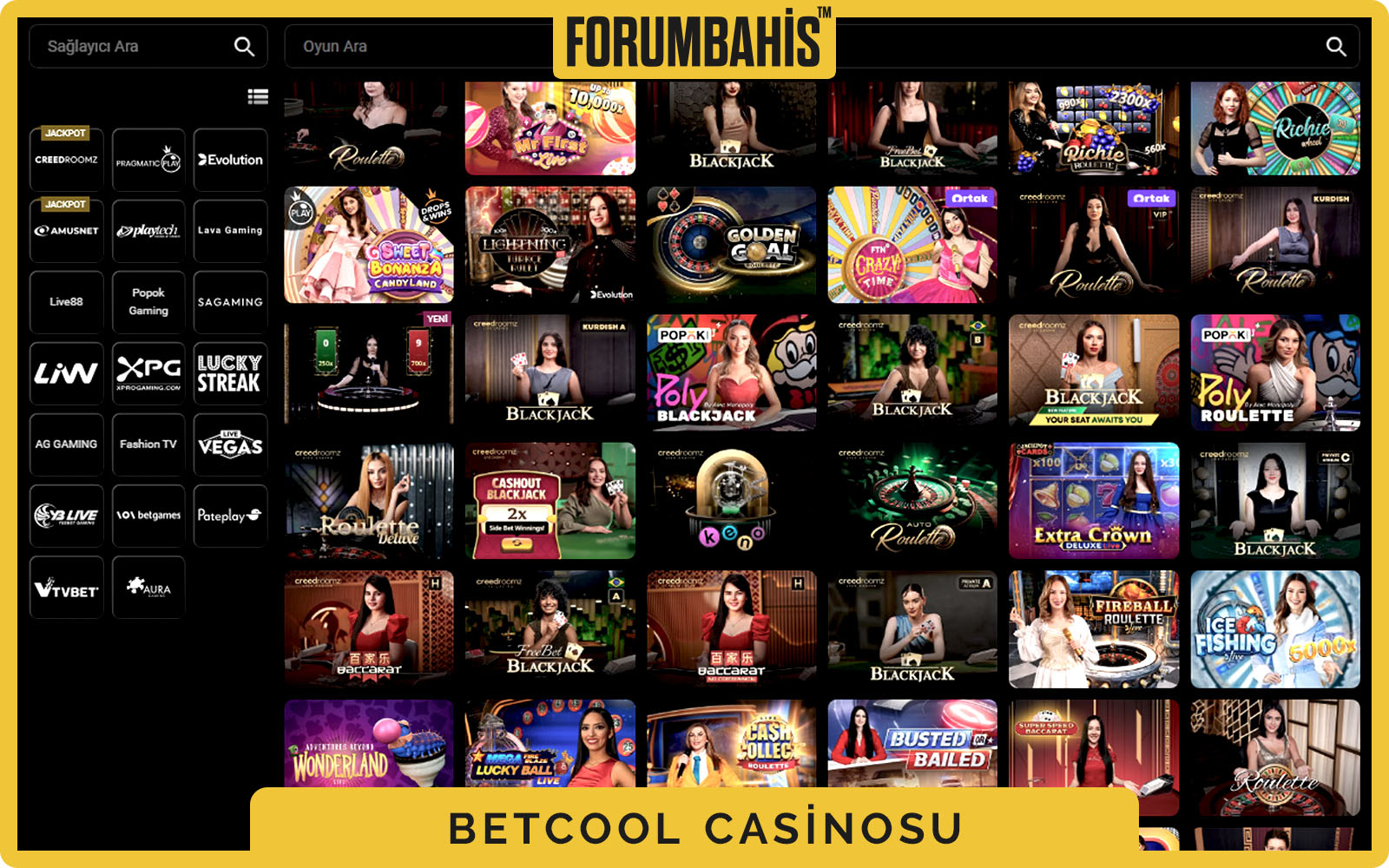 Casino severler için Betcool, 3000’den fazla slot ve masa oyunu sunuyor. Popüler sağlayıcıların en yeni ve yüksek RTP’li oyunları platformda yer alıyor. Slot oyunlarında, Megaways ve jackpot seçeneklerinin yanı sıra, tematik ve bonuslu oyunlar da mevcut. Canlı casino kısmında ise Evolution Gaming ve Pragmatic Live gibi lider sağlayıcılar sayesinde, gerçek krupiyelerle rulet, blackjack ve bakara oynama imkanı sağlanıyor. Oyunların tamamı mobil uyumlu ve hızlı yükleniyor.