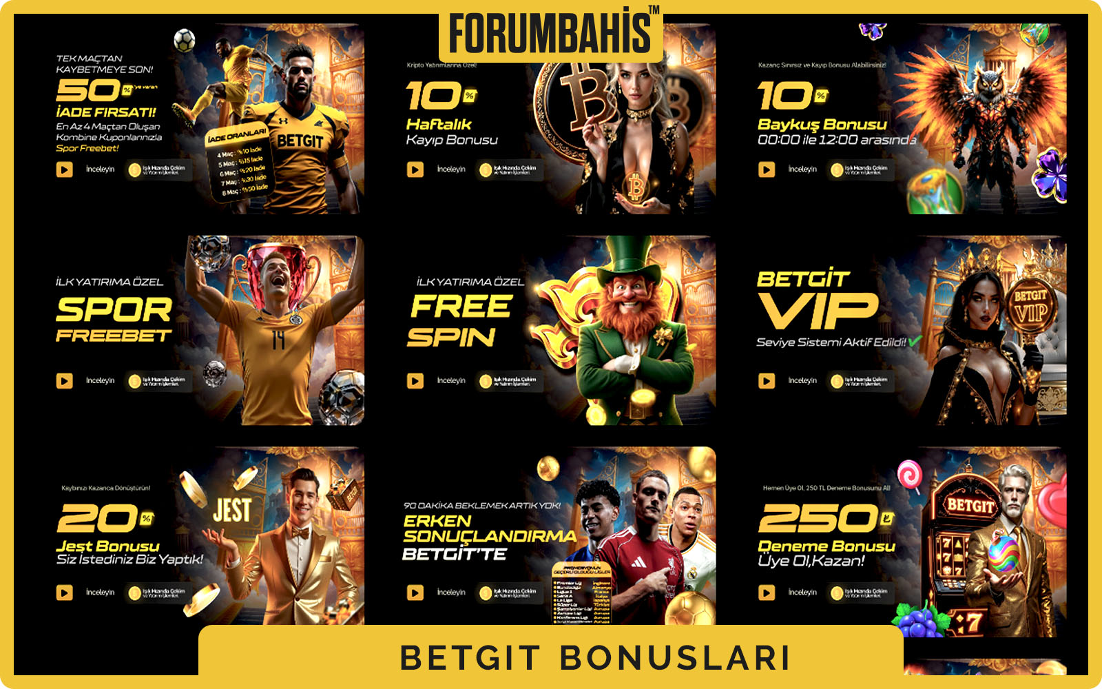 Betgit’in bonus ve promosyon seçenekleri, hem yeni üyeler hem de mevcut kullanıcılar için cazip fırsatlar sunuyor. Hoş geldin bonusu, kayıp bonusları, yatırım bonusları ve ücretsiz bahis gibi farklı promosyonlar mevcut. Özellikle ilk üyelik bonusu ile yapılan yatırımlar %100’e varan oranlarla destekleniyor. Ancak, her bonusun kendine özgü çevrim şartları ve kullanım kuralları var. Benim önerim, bonus almadan önce mutlaka detaylı kural ve şartları incelemek; çünkü çevrim şartları yerine getirilmeden para çekme işlemi yapılamıyor.