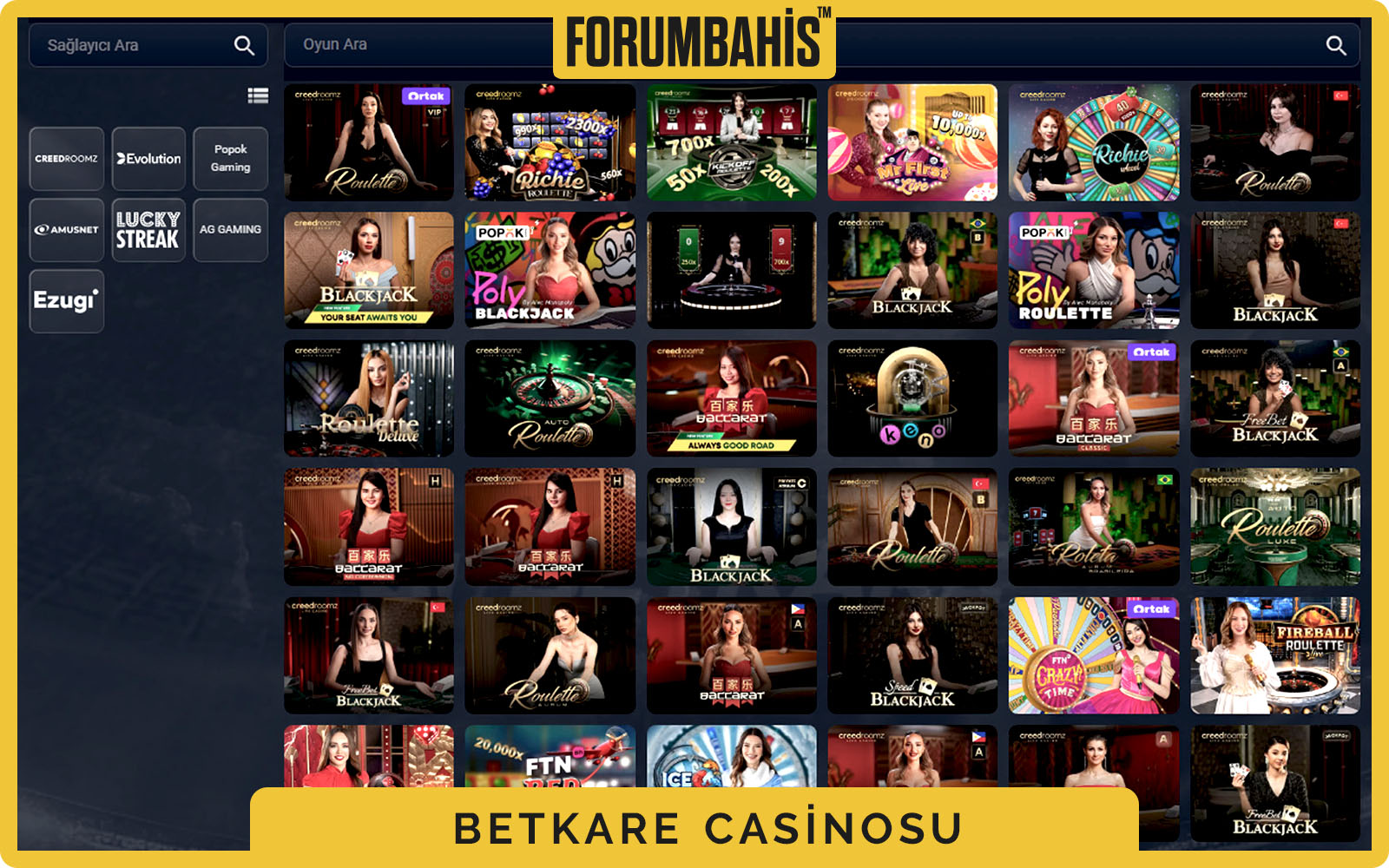 Casino oyuncuları için Betkare, slot makinelerinden canlı krupiyeli masalara kadar geniş bir seçenek sunuyor. Slotlarda klasik 3 makaralı oyunlardan modern video slotlara, jackpotlu oyunlardan bonuslu temalara kadar her zevke hitap eden başlıklar mevcut. Canlı casino ise gerçek zamanlı oyun deneyimini evinize taşıyor. Özellikle blackjack ve rulet masalarında, farklı bahis limitleriyle her bütçeye uygun seçenekler yaratılmış. Oyun sağlayıcılarının çeşitliliği, güvenilirlik ve oyun kalitesi açısından önemli bir avantaj. Benim deneyimime göre, Pragmatic Play ve Evolution Gaming’in masalarında akıcı ve sorunsuz bir oyun keyfi yaşanıyor.