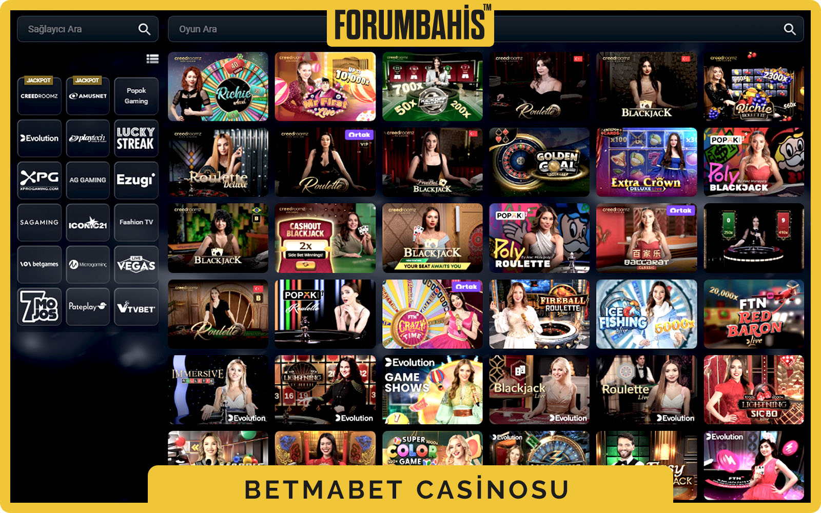 Betmabet’in casino bölümünde öne çıkan en büyük artı, çok sayıda uluslararası sağlayıcıyla çalışması. Bu sayede, hem klasik slotlar hem de yenilikçi jackpot oyunları kullanıcıların beğenisine sunuluyor. Canlı casino deneyimi ise gerçek krupiyelerle, HD yayın kalitesinde gerçekleşiyor. Evolution Gaming, Pragmatic Play, Ezugi gibi sektör devlerinin masaları, farklı bahis limitlerine ve oyun türlerine göre çeşitlendirilmiş. Özellikle blackjack ve rulet masalarında, hem yeni başlayanlar hem de yüksek bahisçiler için uygun seçenekler bulmak mümkün.