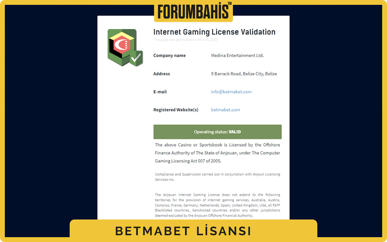 Lisanslı bir site olması ve güçlü altyapı kullanması büyük avantaj. Ancak, Anjouan lisansı bazı kullanıcılar için Malta veya Curacao gibi daha bilinen lisanslara göre daha az tanıdık gelebilir. Buna rağmen, Betmabet’in şeffaf şekilde lisans bilgilerini sunması ve düzenli denetimlere açık olması güven veriyor.