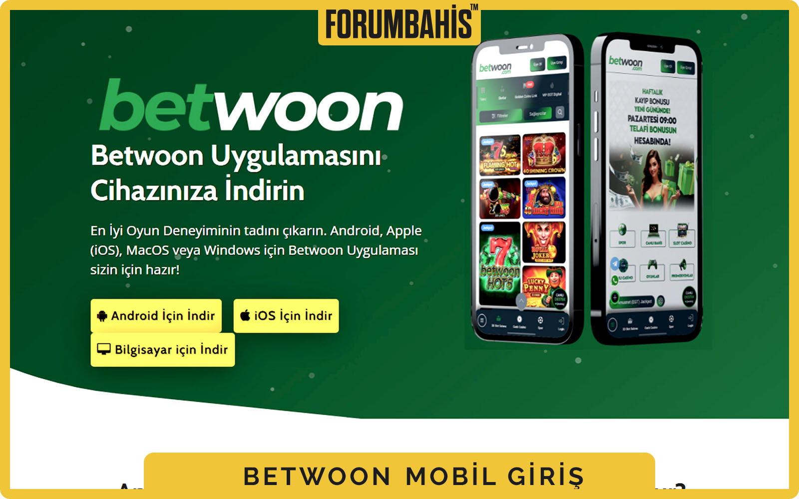 Hayır, Betwoon’un mobil uyumlu web sitesi sayesinde uygulama indirmeden doğrudan mobil tarayıcıdan giriş yapabilirsiniz.