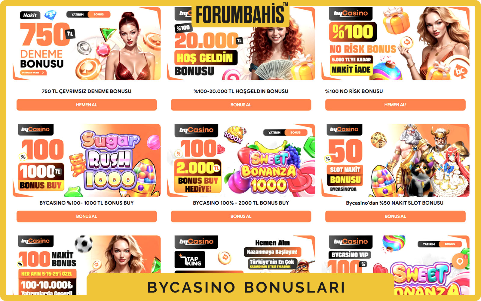 Bycasino, yeni ve mevcut kullanıcılar için çeşitli bonus seçenekleri sunuyor. Hoş geldin bonusu, genellikle %100 oranında ve 2.000 TL’ye kadar veriliyor. Kayıp bonusları ise, casino ve spor bahislerinde ayrı ayrı uygulanıyor; örneğin, casino kayıplarınızın %15’ine kadarını haftalık olarak geri alabiliyorsunuz. Yatırım bonusları ise, belirli ödeme yöntemleriyle yapılan yatırımlarda ekstra bakiye sağlıyor. Benim favorilerimden biri, düşük çevrim şartlı spor bahisleri bonusları; çünkü hem çevirmesi kolay hem de gerçek nakit olarak çekilebiliyor.