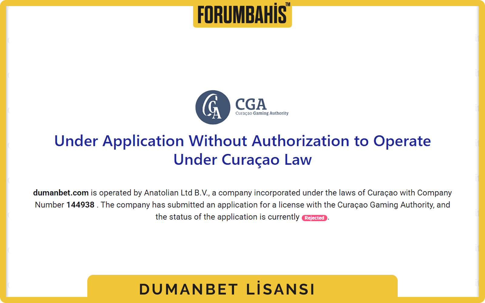 Dumanbet, lisanssız olarak faaliyet gösteriyor; bu nedenle kullanıcılar yasal güvence altında değildir ve tüm işlemler kendi sorumluluğunuzdadır.
