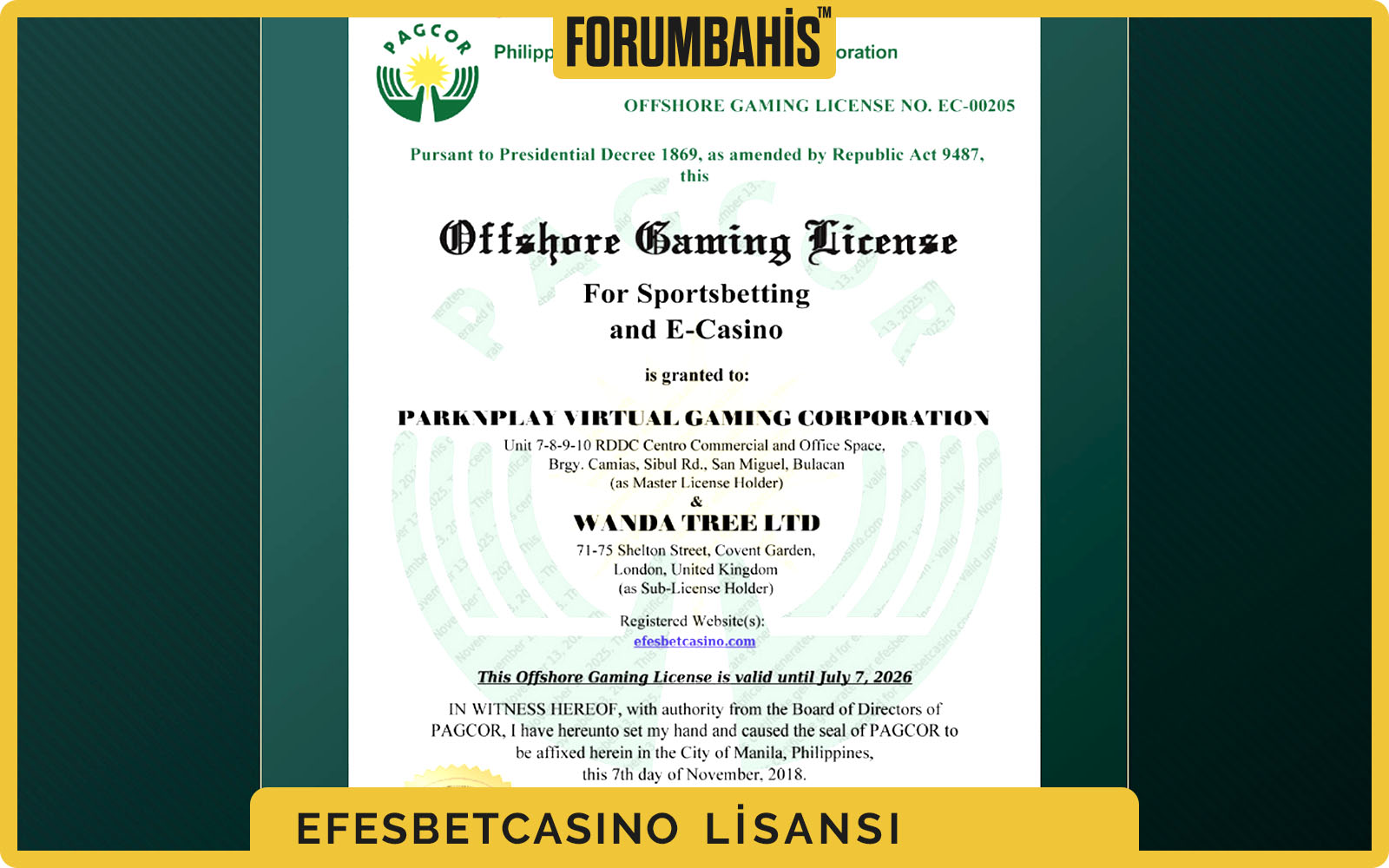 Efesbetcasino, Filipinler PAGCOR lisansı ve BetConstruct altyapısı ile ortalamanın üzerinde bir güvenlik sunuyor. Yine de, Türkiye’de yasal riskler bulunduğunu unutmamak gerekir.