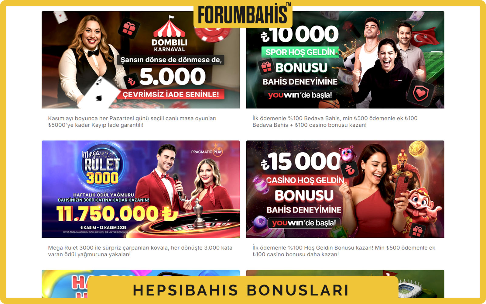 Hepsibahis, yeni ve mevcut kullanıcılarına sunduğu bonuslarla oldukça cömert bir platform. Hoş geldin bonusu, yatırım bonusları, kayıp iade ve freebet gibi promosyonlar mevcut. Her bonusun çevrim şartları ve kullanım koşulları detaylıca açıklanmış. Örneğin, hoş geldin bonusunda yatırdığınız miktarın 10 katı kadar bahis yapmanız ve minimum 1.50 oranlı kuponlar oluşturmanız gerekiyor. Bonus çevrim şartlarını yerine getirmeden ana bakiyeye aktarmak mümkün değil. Benim favorim, kayıp iade bonusları; çünkü kayıplarınızı kısmen telafi edebiliyor.