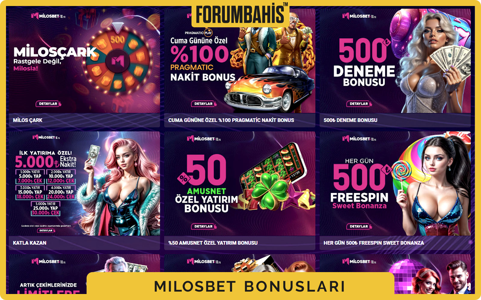 Milosbet, yeni ve mevcut üyelerine sunduğu bonuslarla dikkat çekiyor. Hoş geldin bonusu, kayıp bonusları, yatırım bonusları ve ücretsiz bahisler en popüler promosyonlar arasında. Hoş geldin bonusu genellikle %100 ve 2000 TL’ye kadar veriliyor. Yatırım bonusları ise %15-%20 oranında ve günlük olarak kullanılabiliyor. Kayıp bonusları ise casino ve spor kayıplarınızın bir kısmını geri almanızı sağlıyor. Benim favorim, çevrimsiz yatırım bonusları; çünkü kazançlarınızı çekmek için ek şartlarla uğraşmak gerekmiyor. Ancak, her bonusun kendine özgü çevrim şartları ve kuralları bulunuyor. Aşağıda, Milosbet’in en popüler bonus türlerini ve dikkat edilmesi gerekenleri görebilirsiniz.
