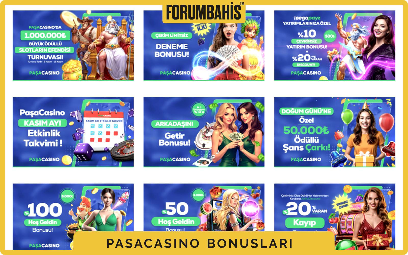 Paşacasino, kullanıcıları çekmek için çeşitli bonus ve promosyonlar sunuyor. Hoş geldin bonusu, kayıp bonusları, yatırım bonusları ve ücretsiz bahis gibi seçenekler mevcut. Ancak, bu bonusların çoğunda sıkı çevrim şartları ve belirli oyunlara özel kısıtlamalar bulunuyor. Benim favorim, düşük çevrimli yatırım bonusları; fakat yüksek tutarlı bonuslarda çevrim şartlarını yerine getirmek oldukça zorlaşıyor. Bonusların aktif edilmesi için genellikle canlı destekten talep açmanız gerekiyor.