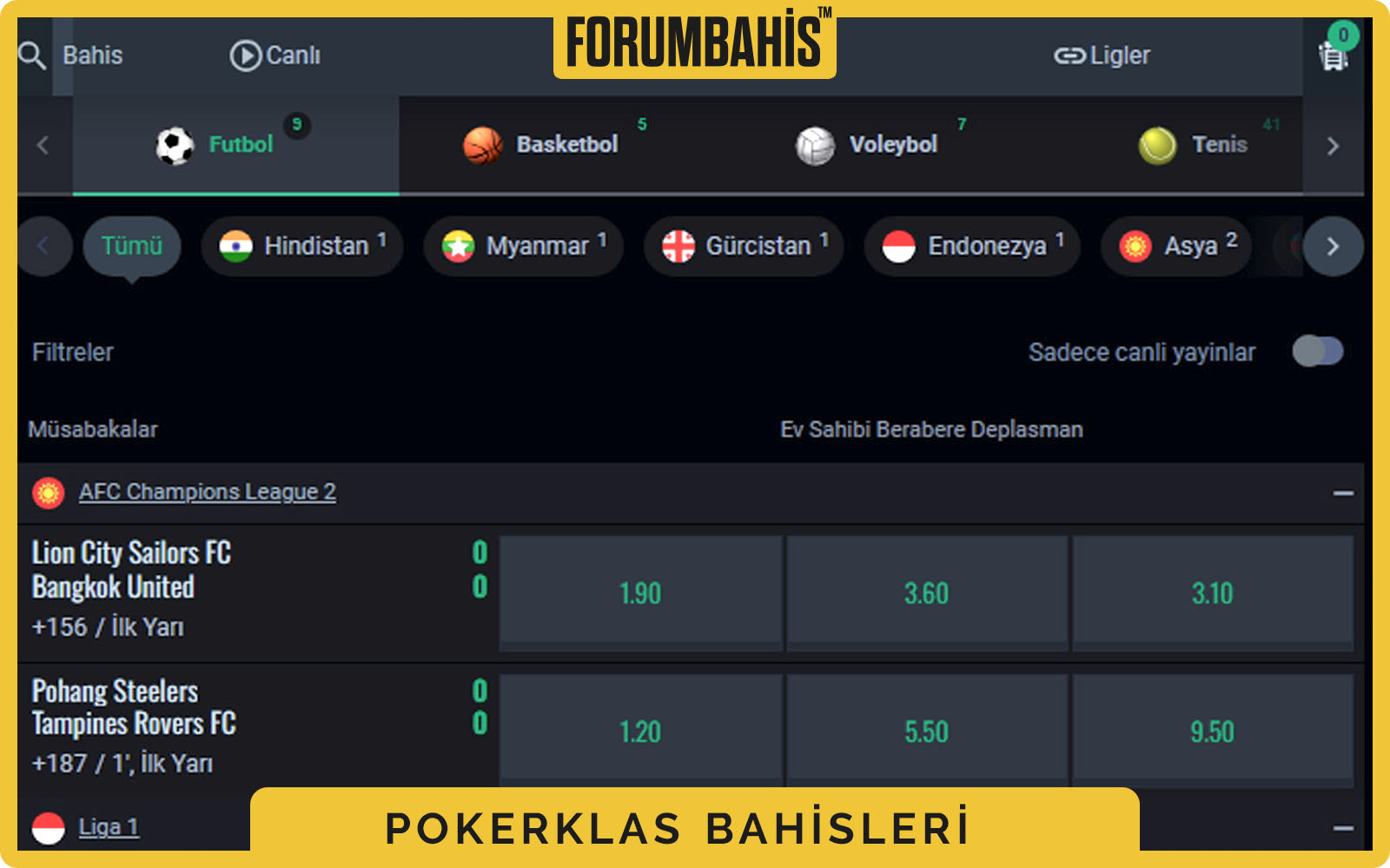 - Handikap, alt/üst, ilk yarı/maç sonucu gibi detaylı bahis seçenekleri