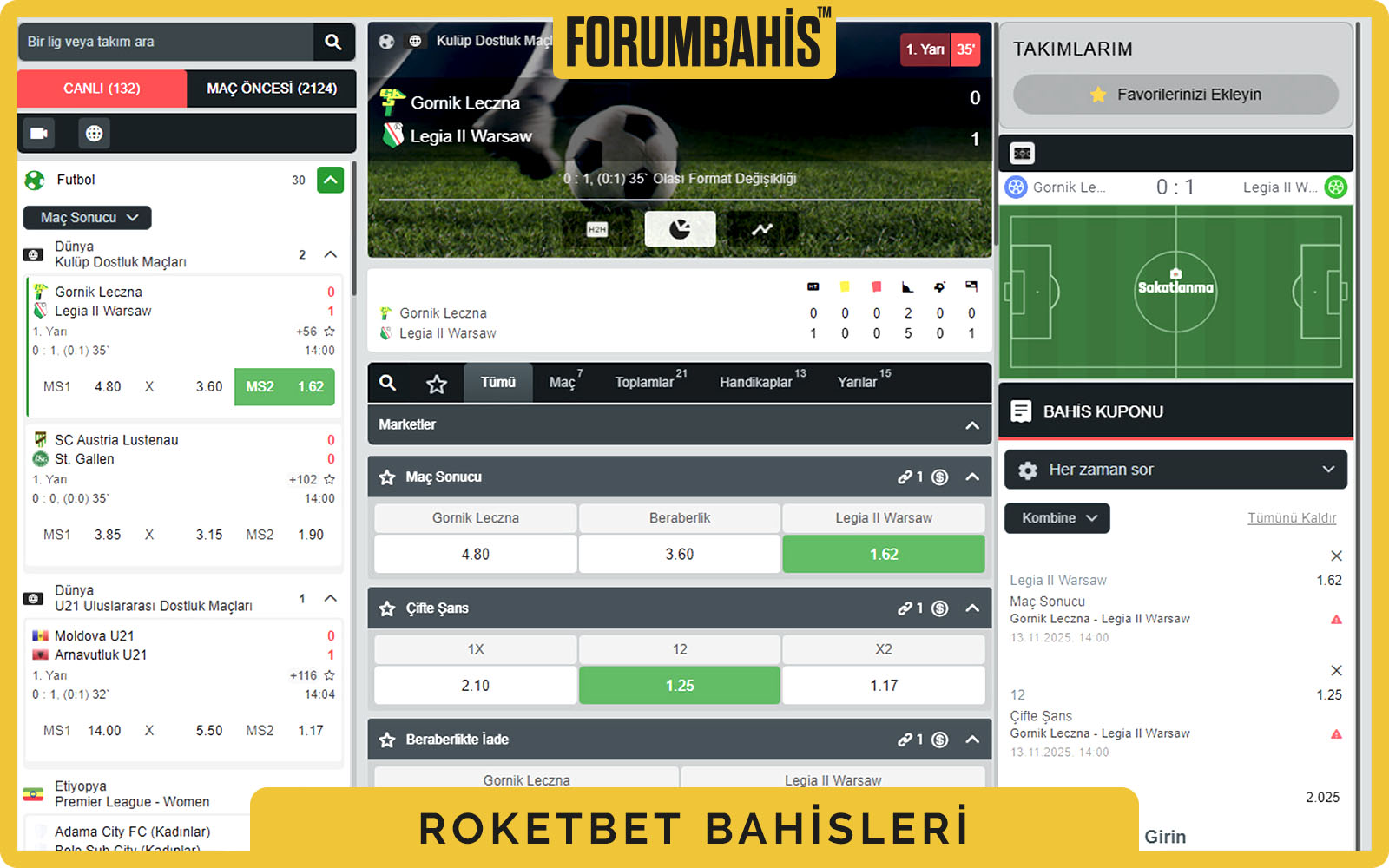 Spor bahislerinde Roketbet, hem yerel hem de uluslararası liglerde oldukça geniş bir yelpazeye sahip. Premier Lig, La Liga, Bundesliga gibi büyük liglerin yanı sıra, Türkiye Süper Lig ve alt liglere de bahis açılıyor. Canlı bahislerde ise anlık oran güncellemeleri ve cash-out seçeneği dikkat çekiyor. Benim tecrübelerime göre, oranlar genellikle piyasadan %2-3 daha yüksek ve bu da uzun vadede daha fazla kazanç anlamına geliyor.