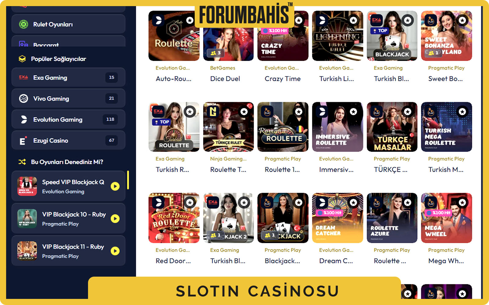 Slotin, oyun sağlayıcıları konusunda son derece seçici davranıyor. Casino ve slot bölümünde en az 20 farklı yazılım firmasının oyunları yer alıyor. Bu çeşitlilik, oyunculara hem klasik hem de yenilikçi oyun deneyimleri sunuyor. Ayrıca, jackpot slotlar, megaways ve bonuslu oyunlar da mevcut. Canlı casino masalarında ise Evolution Gaming başta olmak üzere, Ezugi ve Pragmatic Live gibi sektör devlerinin oyunlarına erişim sağlayabiliyorsunuz.