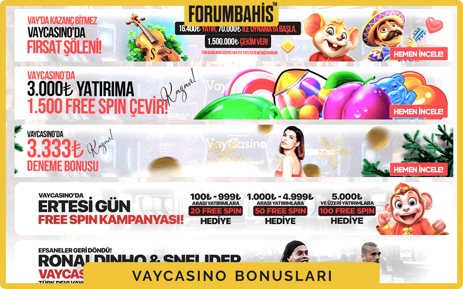 Vaycasino, yeni üyelerine ve mevcut kullanıcılarına çeşitli bonus ve promosyonlar sunuyor. Hoş geldin bonusu, kayıp bonusları ve yatırım bonusları en çok rağbet gören kampanyalar arasında. Ancak, bu bonusların çevrim şartları ve kullanım kuralları dikkatlice incelenmeli. Özellikle yüksek çevrim katları ve oyun kısıtlamaları, bonusun gerçek değerini düşürebiliyor. Benim tecrübem, bonus almadan önce tüm şartları detaylıca okumak yönünde.